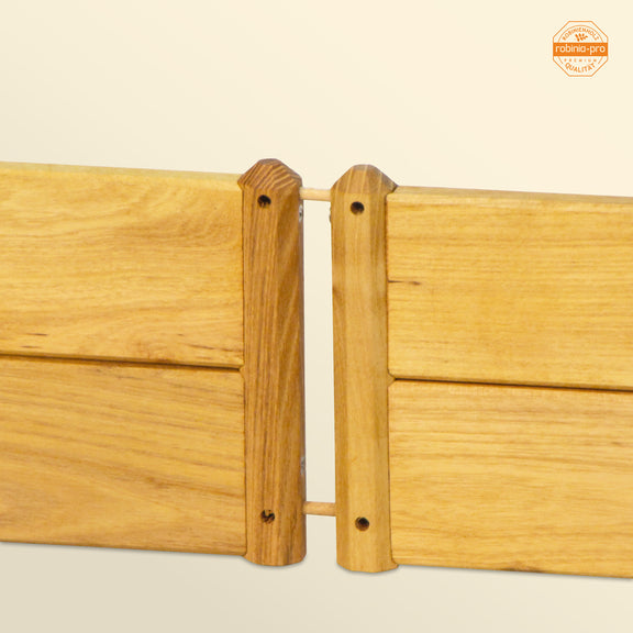 In Längsrichtung sowie im rechten Winkel lassen sich die BEETEINFASSUNG-Elemente mittels Robinienholz-Dübeln aneinander fixieren (Dübel werden mitgeliefert).